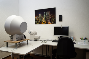 Sehtest : Prüfung der zentralen Tagessehschärfe, des Farbsinnes, des räumlichen Sehens und des Kontrastsehens (Optovist, Vistec AG) und des Gesichtsfeldes (Perivist, Vistec AG)